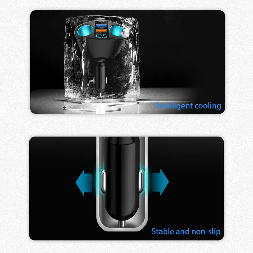 120W QC3.0 Car Charger 12V/24V Dual USB Power Adapter Fast Charging Car Lighter Socket with Blue LED Digital